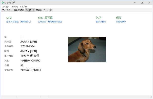 氏名、生年月日、住所、顔写真を表示