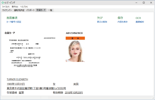 在留カードは券面イメージ、顔写真をICから取り出します。