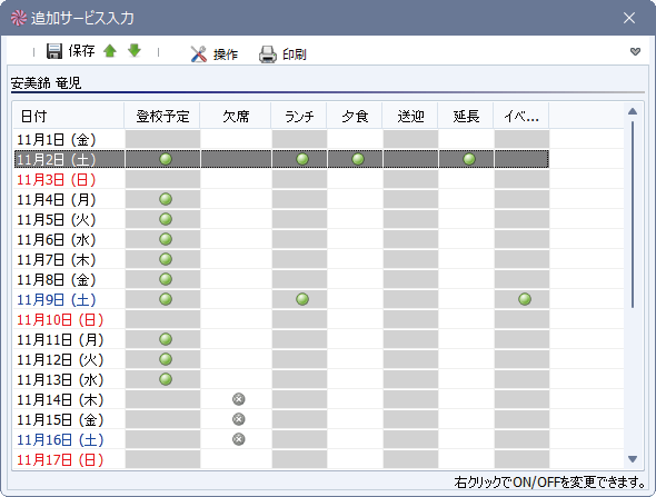 学童保育の現場で便利な追加サービス(ランチ、夕食など)の申込み、集計が簡単にできます