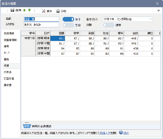 教室運営の事務効率を向上するための入金管理、生徒情報の管理が簡単に行えます。