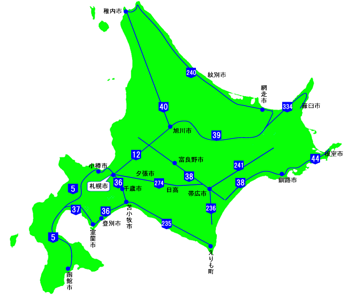 5号線 <函館−七飯町-森町−長万部−ニセコ−倶知安町−共和町−余市町−小樽−札幌> |
