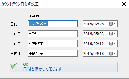 文章編集ウインドウの操作、カウントダウンをクリックして日付の設定を行います。
