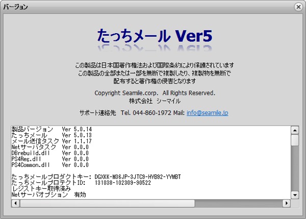 システム情報を表示します。エラーが発生している場合など、このシステム情報を弊社宛にお送りいただくことがあります。